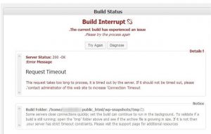 در خطای بالا بدلیل زمانبر بودن ساخت بسته نصبی، افزونه به ما اعلام می کنید که زمان تعیین شده از سمت سرور برای زیپ کردن فایلها یا انتفال آنها به فولدری دیگر، بیش از حد انتظار در افزونه، میباشد.