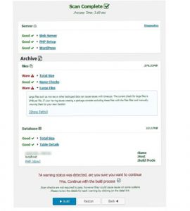 در تصویر بالا همانطور که می بینید، گزینه هایی را با Good و دو گزینه دیگر را با Warn نمایش داده است. این هشدار به خاطر وجود فایلهایی با حجم بیشتر از ۲ مگابایت در پوشه های سایت است.